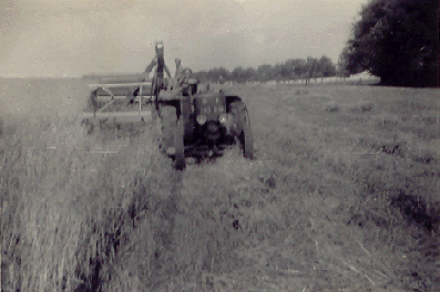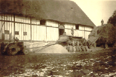 devant la grange, avec le même tracteur qui entraîne la batteuse (S F